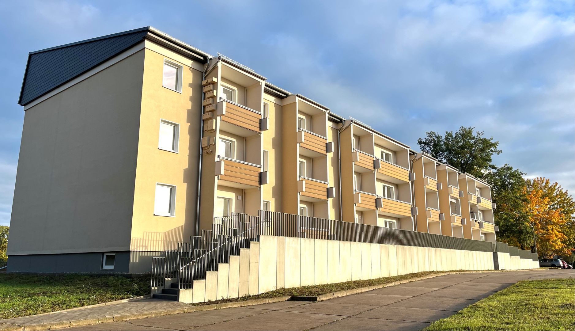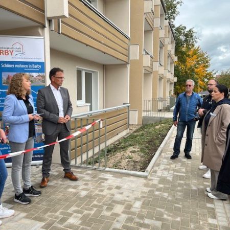 Wir blicken auf eine lange Bauzeit mit vielen Herausforderungen zurück. Im November 2023 konnten wir dank der Ausreichung von Fördermitteln für den Rückbau von 16 Wohnungen die Gebäudestruktur an die aktuellen Anforderungen bzw. Nachfragen in Barby anpassen.
